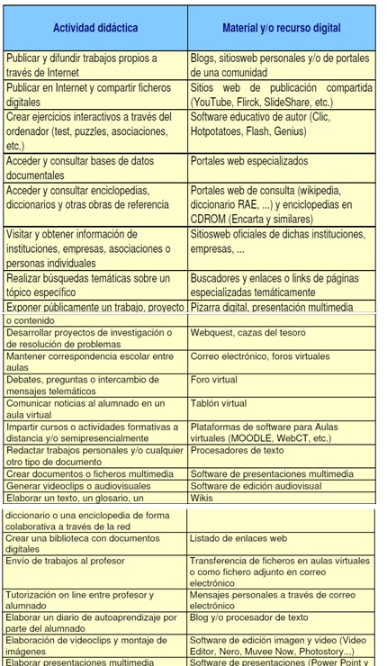 tipos de tareas didácticas a desarrollar a través de los recursos de internet
